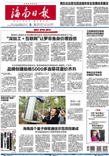 海南日报报业集团旗下媒体: 海南日报 |南国都市报 |南海网 |南岛晚报 |证券导报 |法制时报 |海南农垦报 设为首页