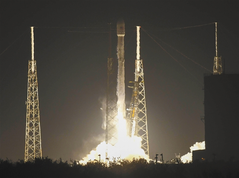 1月7日,美国太空探索技术公司的一枚“猎鹰9”火箭搭载“祖马”航天器,从佛罗里达州卡纳维拉尔角空军基地升空。 在经过多次推迟后,美国政府的神秘航天器“祖马”7日发射升空。目前,外界尚不清楚这一航天器的性质与目的。 新华社/美联