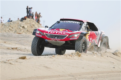 北京时间1月8日,2018达喀尔拉力赛在秘鲁皮斯科完成第二赛段的比赛,该赛段全长278公里,其中特殊赛段267公里,大部分为沙漠和沙石路段。法国车手德普雷以2小时56分51秒的成绩获得该赛段汽车组第一名。图为德普雷在比赛中。 新华社发
