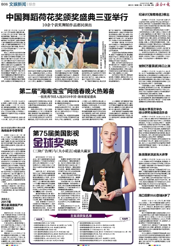 海南日报 文娱新闻综合 014 2018-01-091 2018年01月09日 星期二