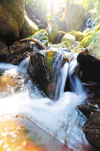 朝下望去,溪涧两旁长满茂密的原始森林,此时此刻,游人们静静地深呼吸,感受空气中的“香甜”。
