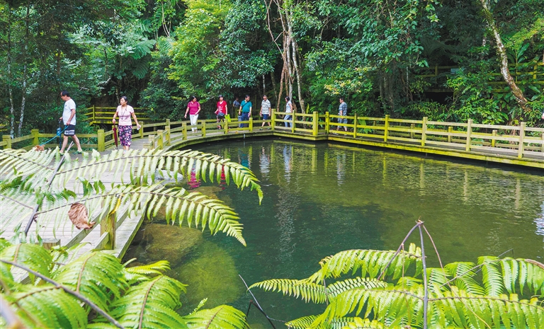 在这里,人们可以扫去心中烦忧,穿越雨林栈道,呼吸清新空气,畅享快乐时光。在这里,百年古藤、千年古蕨、巨大的仙草灵芝、“冷血杀手”见血封喉以及热带雨林的六大奇观等,让人们不虚此行……