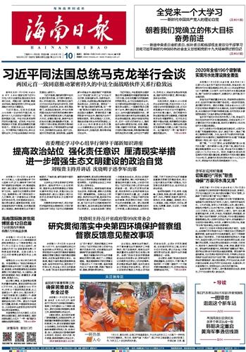 海南日报 头版 001 2018-01-101 2018年01月10日 星期三