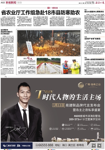 海南日报 本省新闻综合 002 2018-01-101 2018年01月10日 星期三