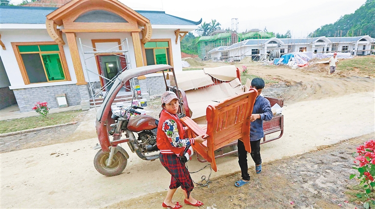 1月9日,在琼中黎族苗族自治县营根镇百花村,村民将家具搬进新家,预计春节前能入住。
