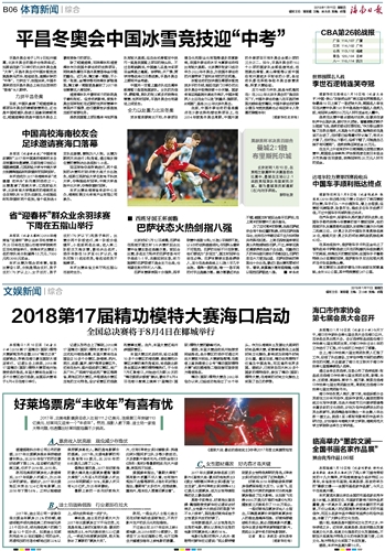 海南日报 体育新闻综合 014 2018-01-111 2018年01月11日 星期四