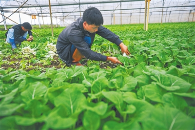 万宁现有常年蔬菜基地49个,主要种植菜心、上海青、小白菜、空心菜等30余个品种,常年蔬菜基地露地种植率达98%,大棚种植率达100%;叶菜种植面积占基地种植面积70%以上;蔬菜自给率达90%以上。本报记者 袁琛 摄