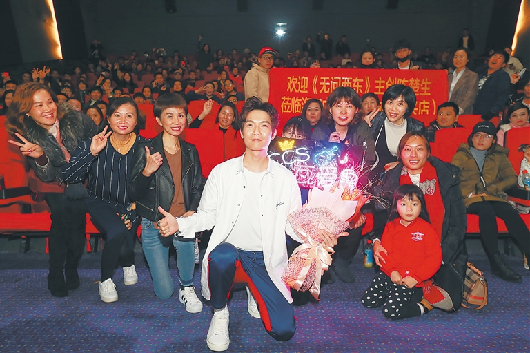 中午12时45分,记者随本地媒体同行和众多影迷、歌迷提前来到海口星轶国际影城观看了《无问西东》。下午3时过后,电影放映结束,陈楚生在全场观众热情的掌声中快速跑上舞台与观众见面。