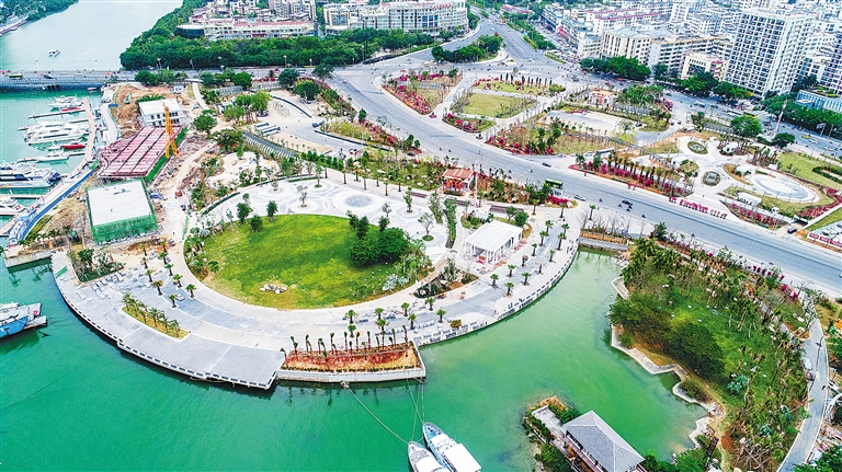 “目前公园主体已经完工,现在正加速公园内部绿植施工。”三亚市住建局市政维护应急中心副主任吉嘉骥透露,鹿回头滨河公园总占地面积为15.6万平方米,是集市民广场、公园、游艇码头于一体的大型综合性景观公园,“公园绿植预计1月20日左右完成,1月底向市民游客开放。”