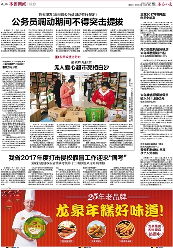 海南日报 本省新闻综合 004 2018-01-121 2018年01月12日 星期五