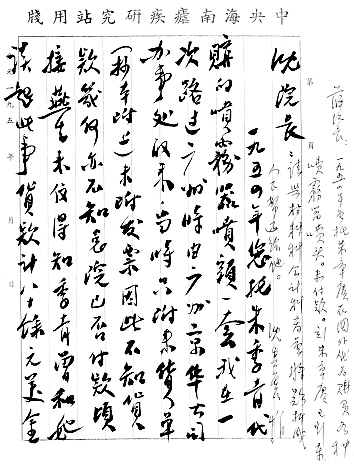 为此,1954年何琦特别请时任中国医科院院长沈其震,转托联合国世界卫生组织卫生行政组主任朱章赓在国外购买几套喷雾器喷头﹐作为国内进行仿制的样品。1957年,朱章赓再次回国访问时,向何琦索取此项货款计80余元美金。于是,何琦专门致信沈其震敦请总院付还此项欠款。何燕生在其父的档案中,查到了这封当年7月30日写就的信。信上还有沈其震院长转请薛公绰副院长办理此事的批示。