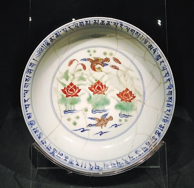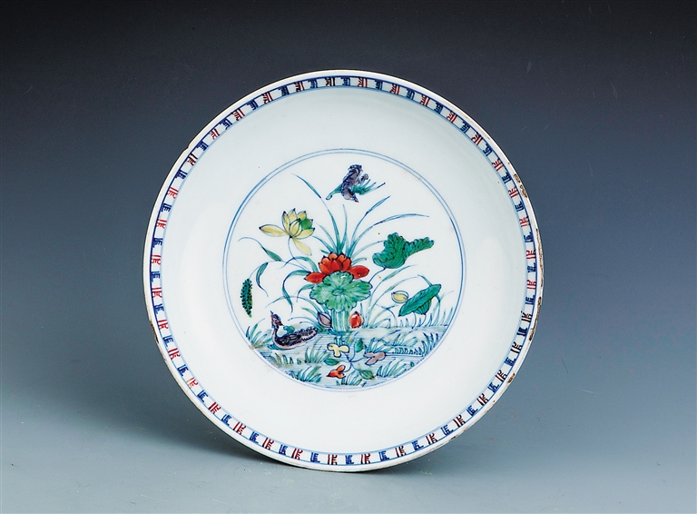在香港苏富比拍卖会上,一件由玫茵堂珍藏,体积小巧、大不盈掌的明成化斗彩鸡缸杯,被上海收藏家刘益谦以2.8亿港元的天价竞得,此次拍卖刷新了当时中国瓷器拍卖的成交纪录,这个发生于2014年4月的拍卖到现在仍让斗彩收藏爱好者念念不忘。这斗彩到底是以何种魅力引得世人青睐,在历史碾转中它又是如何发展演变,从海口市博物馆所藏的清雍正斗彩莲池鸳鸯纹盘中,我们或许可以得窥一斑。