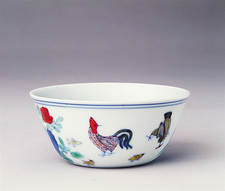 成化斗彩确是明一代最负盛名的瓷器品种之一,在明代当朝已经声名远播。明朝沈德符《敝帚轩剩语》中云:“本朝窑器用白地青花,间装五色,为今古之冠,如宣品最贵,近日又重成窑,出宣窑之上。”明确指出成化斗彩青出于蓝,在宣德之上。在明万历《神宗实录》中载:“神宗时尚食,御前有成化彩鸡缸杯一双,值钱十万。”一般认为成化斗彩器是明宪宗朱见深为宠妃万贵妃专门订烧的,沈德符《万历野获篇》中评价万贵妃云: “自古妃殡承恩最晚、而最专最久者, 未有如此者。”讲的是万贵妃虽然比成化帝年长却专宠最久,成化斗彩为其烧造倒也在情理之中。但刘新园先生认为成化帝自身就精通绘画,喜好玲珑精细之器,而万贵妃喜爱佩刀带剑,穿武夫盔甲,成化斗彩这种器形小巧,画意高雅的瓷器,应与成化帝审美情趣吻合,推测应是成化帝亲自倡导或“命令殿中画院人遣画也”。