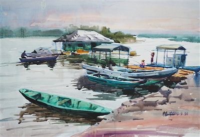 “记住乡愁——刘克银绘画作品展”刚刚落下帷幕,1月7日,“迹象·风物——赵福才水彩作品展”又在海口国新书苑开幕。本次展览展示了画家赵福才近几年创作写生的70余幅精品力作,这其中有他寒暑假期间自驾西藏、北上齐鲁长途跋涉的风景写生作品。值得一提的是,“迹象·风物——赵福才水彩作品展”也是2018年开篇特色展览之一,展览特色源自赵福才独特的生活体验方式。从展出作品中,观众可以看到一位热爱生活的画家;赵福才上学时就热衷旅行写生,足迹遍布海南山山水水,后任教于海南师范大学,长期坚持水彩风景画创作与研究,画了大量的水彩写生及钢笔速写。