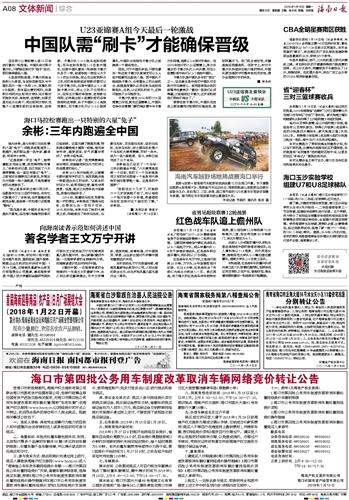 海南日报 文体新闻综合 008 2018-01-151 2018年01月15日 星期一