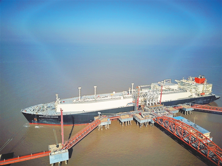 这是1月15日拍摄的停靠在洋口港的澳大利亚“南十字星”号LNG船。 当日,来自澳大利亚的“南十字星”号LNG(液化天然气)船靠泊在江苏省如东县洋口港,这是江苏LNG接收站迎来的第200艘LNG船。2011年5月投产以来,洋口港江苏LNG接收站累计接卸LNG1700多万吨,在华东地区的保供调峰方面发挥了重要作用。 新华社发