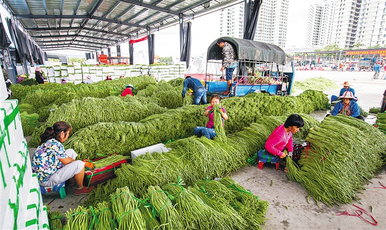 冯强透露,崖州区正在筹备申报崖州豇豆、崖州青瓜等地理标志,未来将依托崖州果蔬综合批发市场强大的服务能力,谋划建立起辐射东方、乐东、保亭和陵水等琼南市县的瓜菜集散交易中心,发展热带高效农业,促进农村发展、农业增效、农民增收。