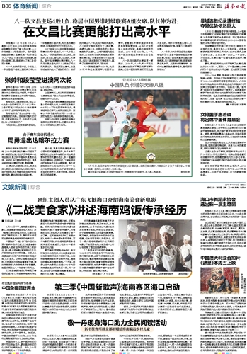 海南日报 体育新闻综合 018 2018-01-161 2018年01月16日 星期二