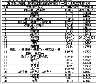 根据海口市不动产登记中心《关于协调解决重叠问题的函》,经查,海口拓一置业有限公司已取得该两块土地的开发权并已付清土地出让金。我局现决定通告注销两块土地内的62宗土地的土地使用证(详见附表)。该62宗土地证将不再具有法律效力。如有异议,请自通告之日起15日内,以书面形式向我局琼山分局申诉。逾期不申诉视为无异议,我局将按有关法律规定办理相关土地手续。附件:1.海口市红城湖片区棚改回迁商品房项目(一期)土地证注销名单。2.关于海口市红城湖片区棚改回迁商品房项目(一期)申请注销两块土地上拆迁户土地证的函。