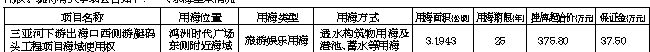 根据《中华人民共和国海域使用管理法》、《海南省实施〈中华人民共和国海域使用管理法〉办法》和《海南省海域使用权审批出让管理办法》及有关法律法规规定,经三亚市人民政府批准,三亚市海洋与渔业局决定以挂牌方式公开出让三亚河下游出海口西侧游艇码头工程项目海域使用权。现将有关事项公告如下: 一、宗海基本情况
