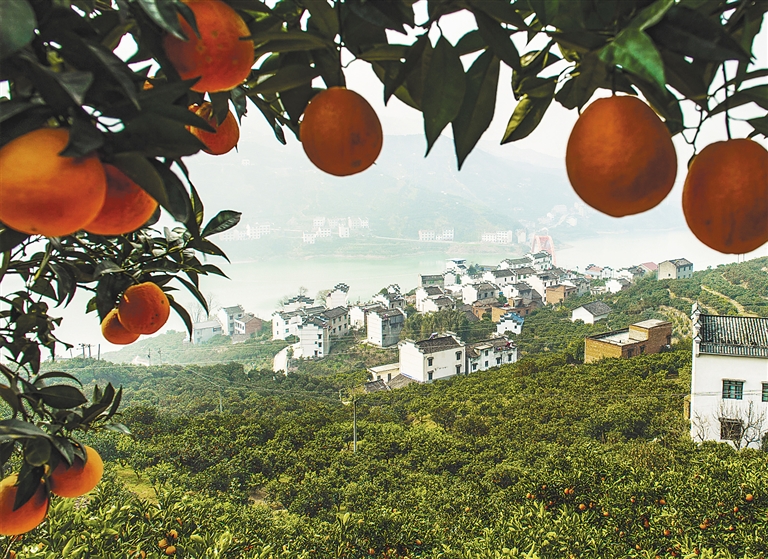 这是日前拍摄的脐橙鲜果掩映下的湖北省秭归县郭家坝镇烟灯堡村民居。 位于三峡库区的湖北省秭归县脐橙种植历史悠久,有“中国脐橙之乡”的美誉。当地以农业产业化龙头企业引领,开发出了橙汁、橙茶、橙酒、橙醋、精油、果胶、保健食品等系列产品;通过“脐橙+文化+旅游”模式,以脐橙等生态农业为基,以美丽田园为韵,吸引游客前来乡村游、自驾游和采摘游。 新华社发