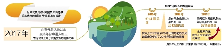 其中,2015年至2016年出现的强厄尔尼诺现象就促成了2016年创纪录的高温