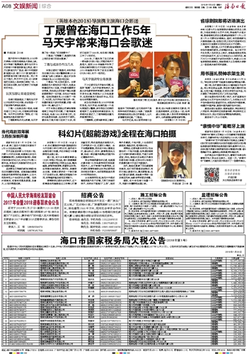 海南日报 文娱新闻综合 008 2018-01-201 2018年01月20日 星期六