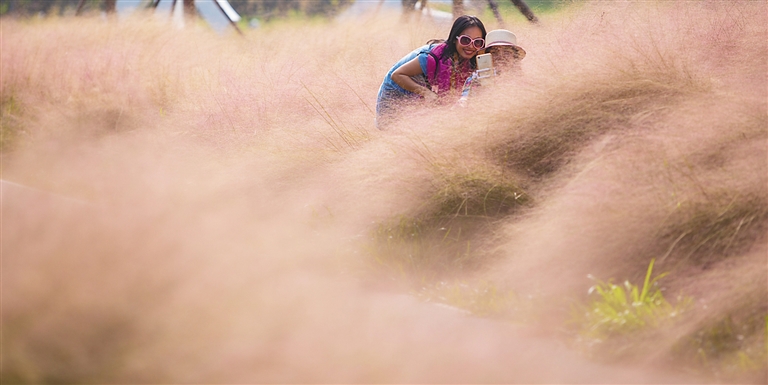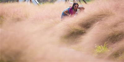 粉黛乱子草是近年来观赏草类的“新宠”,属于多年生植物,花期可以从9月中旬至11月中旬。不过有园林工作人员介绍,这种草观赏需要条件,一是天气好,二是要远观,因为一刮风下雨,粉黛乱子草轻盈的花穗就容易受影响,变得“颜值不再”;而且要大片种植才能看出其颜色成片的效果,拍照时适合“远观上镜”。