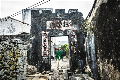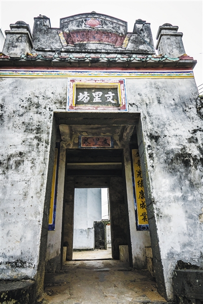 在村子的西北边,有一座高高的门楼,上面红底黑字写“守望楼”三个大字。郑晖世介绍,守望楼是由时任琼山县长的村里人郑里铎建造,守望楼不仅包括这个门楼,还包括了巷子里面的耕读门、师竹斋及郑氏祖屋。