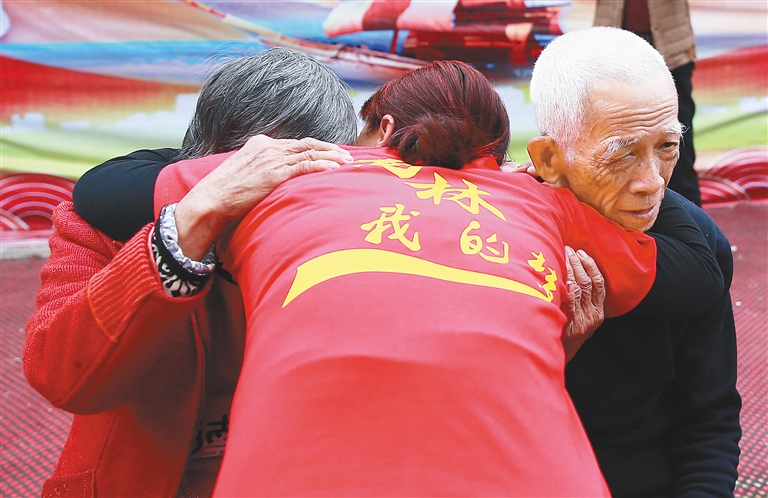 村口,张运印的五个女儿一起回来了;张泰岗的六个女儿也都回来了;张运丁老人的妹妹已不在世,但她的儿子们代替妈妈回来了……女儿们、女婿们、亲人们,陆陆续续都回来了,大家抱成一团,有欢聚一堂的欢声和笑语,更有久别重逢的相拥与泪水。