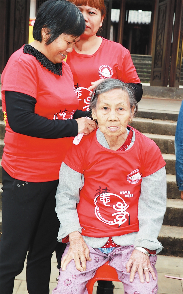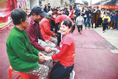 “走!孩子们都回来了,咱们一起去祭拜祖先张岳崧。”在长辈的招呼下,这些久别故乡的外嫁女儿,坐上车,组成浩浩荡荡的车队,成为当天龙湖镇的一道独特风景线。中午时分,在舞狮队的欢腾中,大家回到村里。舞台已备好,载歌又载舞。大家欢聚一堂,异常热闹,格外开心。而“谢父母恩情,跟爸妈说句心里话”为主题的德孝仪式,将活动推到了高潮。台上,归来的女儿们为父母表演精心准备的节目,父母长辈们则陆续上场谈感受、道祝福;台下,女儿拉着双亲的手,久久不愿放开;活动现场,孩子们则被这一幕幕教育着、感动着……