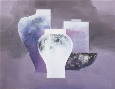 不同于马杰以中国墨解构抽象艺术,林峰则是在描绘静物中,凭借色彩的表现性,折射出画家与观众的情感共鸣。