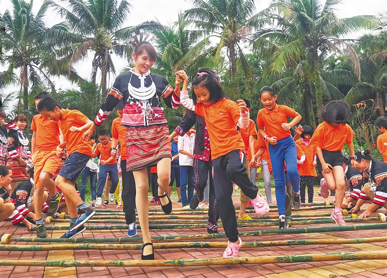 1月21日,一家教育培训机构组织30多名海口小学生到陵水黎族自治县本号镇大里地区开展冬令营活动。本报记者 苏庆明 摄
