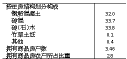 农户住房主要为砖(石)木结构、砖混和钢筋混凝土。住房为砖(石)木结构的41.90万户,占33.8%;砖混结构的41.82万户,占33.7%;钢筋混凝土结构的39.75万户,占32.0%;竹草土坯结构的0.17万户,占0.1%;其他结构的0.48万户,占0.4%。