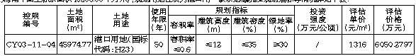 根据三亚市创意产业园管理委员会出具的《关于三亚市创意产业园控规CY03-05-01、CY03-11-02和CY03-11-04地块相关情况说明的函》(三创园函〔2018〕18号),该宗地属海洋产业类用地。按照三亚市人民政府《关于印发三亚市社会投资项目参考经济技术指标的通知》(三府〔2014〕159号)的要求,该宗地投资强度不低于400万/亩,年产出强度不低于500万/亩,年税收贡献不低于30万/亩。