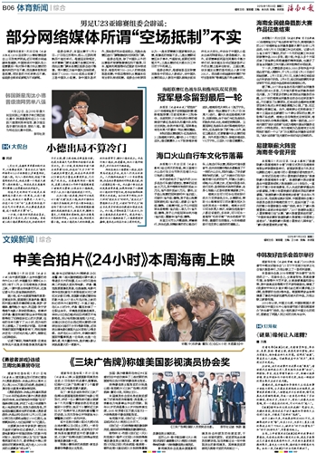 海南日报报业集团旗下媒体: 海南日报 |南国都市报 |南海网 |南岛晚报 |证券导报 |法制时报 |海南农垦报 设为首页