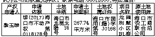根据海南省人大常委会《关于加快积压房地产产权确认工作的决定》,现将海口市国土资源局对下述积压房地产土地确权登记申请的审核情况予以公布(详见下表)。对公布的土地使用权、所有权及他项权利有异议者,请于通告之日起60日内,以书面形式并持有关证据到海口市国土资源局龙华分局(国贸二横路国土大厦14楼)办理异议登记或复查手续,逾期没有提出异议的,即认为公布的权益无异议。联系电话:68512605,特此通告!