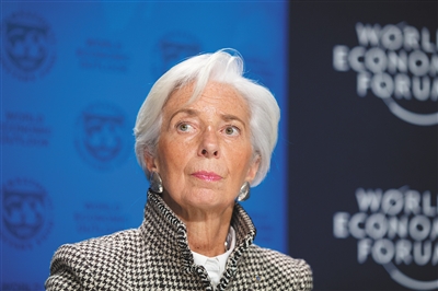 1月22日,在瑞士达沃斯,国际货币基金组织总裁拉加德出席记者会。 国际货币基金组织(IMF)22日发布报告,将今明两年全球经济增长预期较去年10月的预测值均上调0.2个百分点至3.9%。新华社发