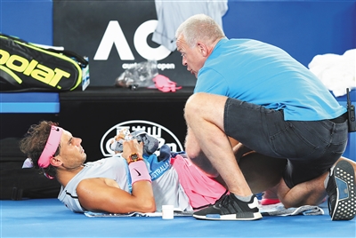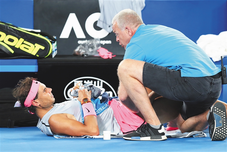 纳达尔在与西里奇的比赛中遭到对手的顽强阻击,两次领先两次被追平,前四盘战成2∶2平(6∶3/3∶6/7∶6/2∶6)。在第四盘中段,纳达尔右大腿肌肉受伤,他坚持打决胜盘,但最终在0∶2落后时遗憾退赛。