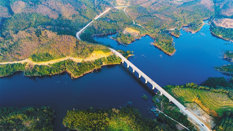 近日,在琼中黎族苗族自治县中平镇崩坎村附近,已经修建完工的红岭大桥屹立在山水之间。据了解,红岭大桥处在红岭水库淹没区,该桥于去年竣工通车,将琼中的中平镇、新市农场、岭头农场和屯昌县、琼海市等地连通起来。
