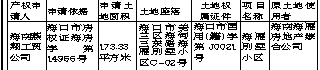 根据海南省人大常委会《关于加快积压房地产产权确认工作的决定》,现将海口市国土资源局对下述积压房地产土地确权登记申请的审核情况予以公布(详见下表)。对公布的土地使用权、所有权及他项权利有异议者,请于见报之日起60日内,以书面形式并持有关证据到海口市国土资源局美兰分局(海口市振兴路8号)办理异议登记或复查手续。逾期没有提出异议的,即认为公布的权益无异议。联系人:李宁 联系电话:0898—65336234