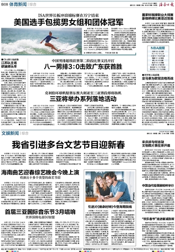 海南日报 体育新闻综合 020 2018-01-261 2018年01月26日 星期五