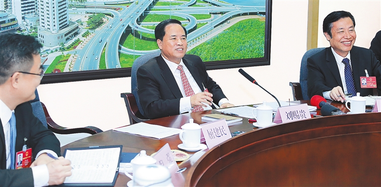 在三亚代表团,刘赐贵勉励大家抓住海南建省办经济特区30周年的机遇,发扬敢闯敢试、敢为人先、埋头苦干的特区精神,迎接更富挑战的改革开放攻坚。他强调,下一步,要以更精准的定位、更配套的措施、更具有勇于自我革命的精神来推动改革,要实施更大范围、更深层次、更具活力的开放。要紧密结合海南的实际,充分发挥海南“三大优势”,围绕“三大愿景”,以问题为导向,坚决摒弃阻碍美好新海南建设的藩篱,推动体制机制更适应改革开放发展需要,实现资源效益的最大化。
