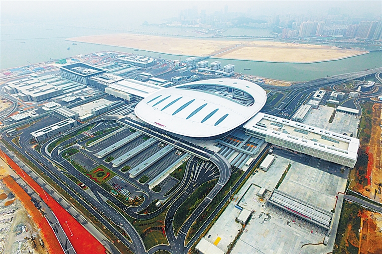 这是1月26日航拍的港珠澳大桥珠海公路口岸。近日,由中建三局承建的港珠澳大桥珠海公路口岸工程完工,目前已进入各分部、分项验收阶段。 新华社记者 梁旭 摄