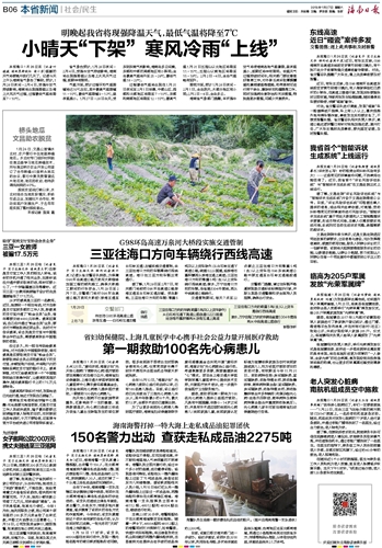 海南日报 本省新闻社会/民生 014 2018-01-271 2018年01月27日 星期六