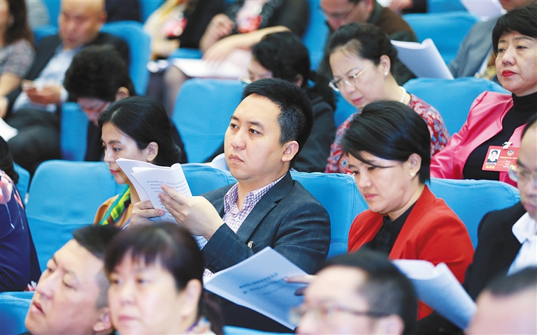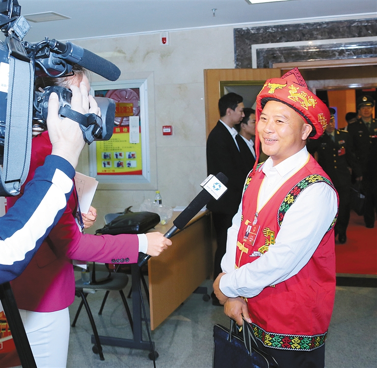 1月26日,来自五指山代表团的少数民族代表接受媒体采访时表示,听完政府工作报告之后备感振奋、备受鼓舞。本报记者 李英挺 摄