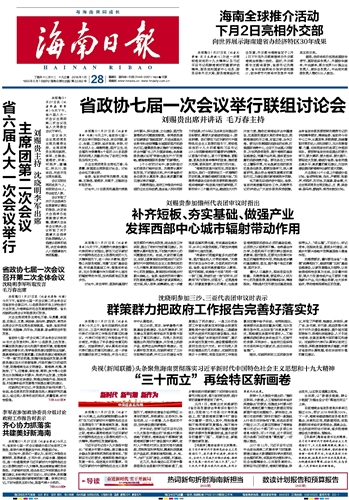 海南日报 头版 001 2018-01-281 2018年01月28日 星期日