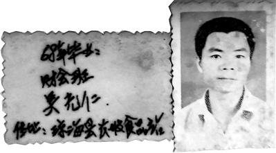 “你看这一张,是我毕业后踏入社会的第一张证件照,也是我人生中的第一份工作。当时刚毕业,被分配到琼海食品站,那时候生活没有现在富裕,能在食品站工作是一件非常幸福的事。我在那里一干就是24年,那里有我太多的回忆。”指着其中一张照片,吴光仁喃喃地说。