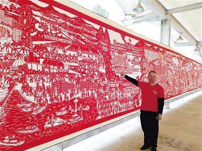 这是一幅巨幅剪纸作品,长27.65米,宽1.93米,总面积超过50平方米。
