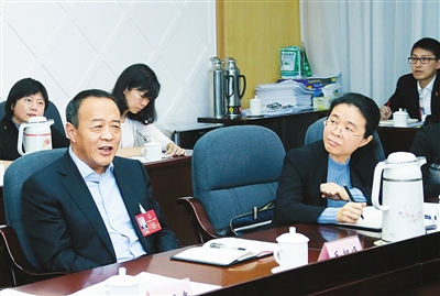 1月28日,参加海南省六届人大一次会议的代表们分组审议省人大常委会工作报告。毛超峰代表参加琼海代表团的审议。本报记者 李英挺 摄